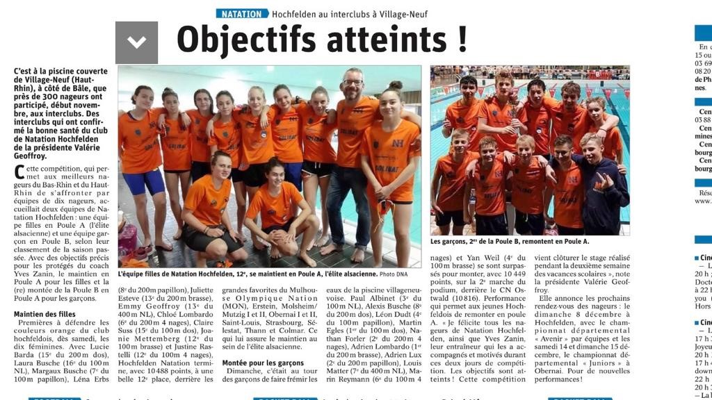 Natation Hochfelden a atteint ses objectifs aux interclubs de Saint-Louis les 09 et 10 novembre.